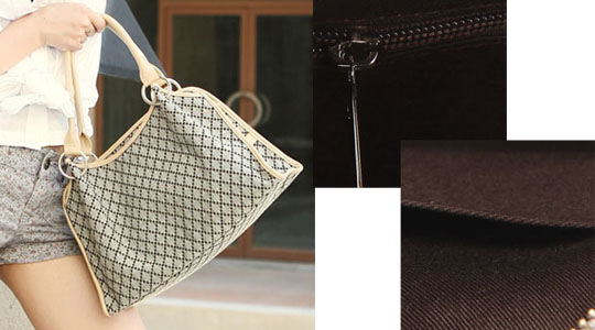 包身采用高档进口菱形花纹布料,以灰色主调搭配优雅高贵的杏色皮革剪裁,运用传统手工工艺,包包内部采用的纯棉