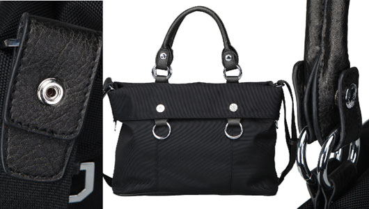 高档黑色帆布质地搭配光泽的银色五金,体现出包包超强的立体感,简约的设计风格加上此包多用特性,完全是一款为精干的OL女性所设计的一款包包。