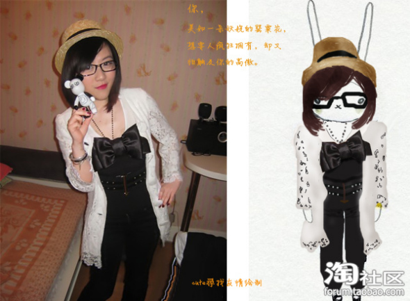 哈哈 哈哈 不错不错 淘宝里 人才倍出这个兔子真牛,楼主也搭得不错啊楼主好漂亮啊全是复古装挖