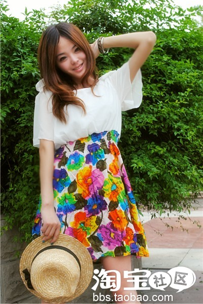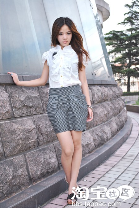 NO.4小飞袖双荷叶边衬衣+高腰裙
