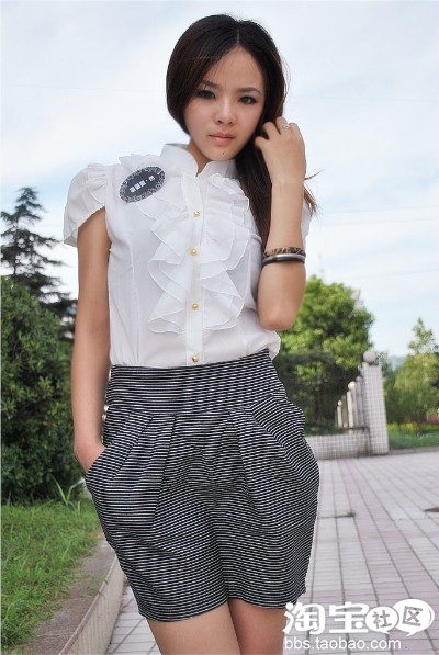 上衣尽量可以选择胸口有点缀装饰的,视觉上上围更加丰满
