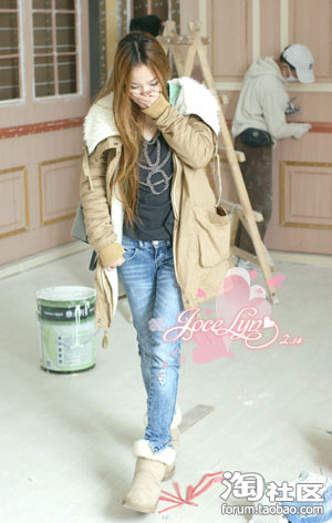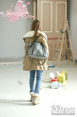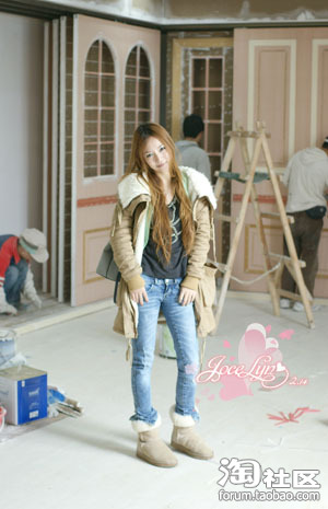 今天还很冷,穿的是翻毛领棉衣,驼色的衣服我很爱,因为可以很好的衬托肤色,搭配同色系的ugg,瘦腿牛仔裤+钉珠TEE,休闲一百分啦~~