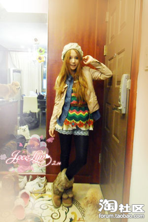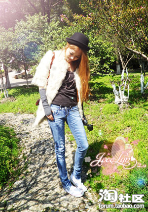 今天还是冷啊~~帽子买了没处戴~~只好关起门来臭美一下了 哈哈哈