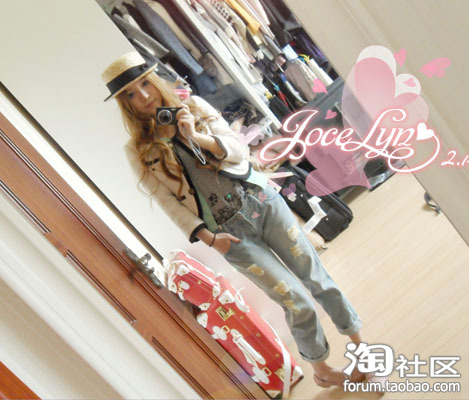 香奈儿风小外套搭配破洞卷裤管7分裤,当然啦还有今年大热的平顶圆草帽!~混搭混搭,lady+古着!!!