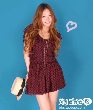 简单的中袖蝴蝶结雪纺洋装,是豆沙色的,我很喜欢这种中间调的颜色,特别称皮肤,中袖的感觉也是很女人味,搭配的草帽是有黑白点的带子的,很可爱。鞋子是玖熙的款,也是有点豆沙粉,搭配蕾丝短袜,很复古呢!~