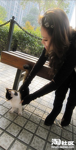 在小区门口看见了一只小猫,忍不住抱了抱,好可爱~想带回家!哈哈~
