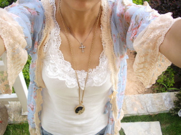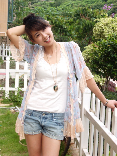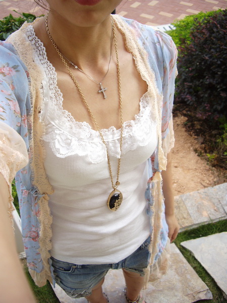 這件蕾絲罩衫買來的時候我閒太短了,跟模特圖片上的不一樣