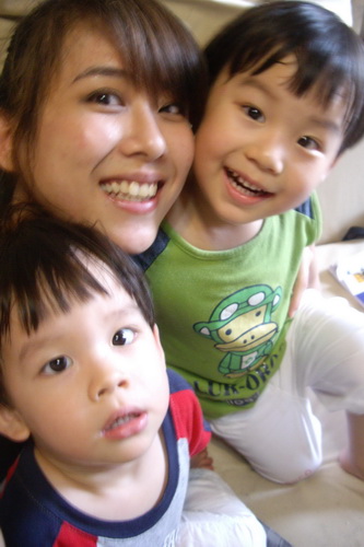小家伙很可爱啊好可爱的俩帅哥,妈咪也很漂亮哟!
