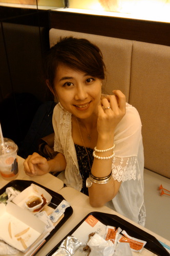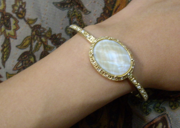 我當天晚上佩戴了一個母貝手鐲,很漂亮,但是有點大,如果手細的MM就不適合了