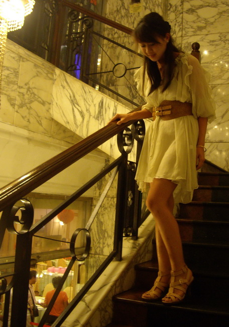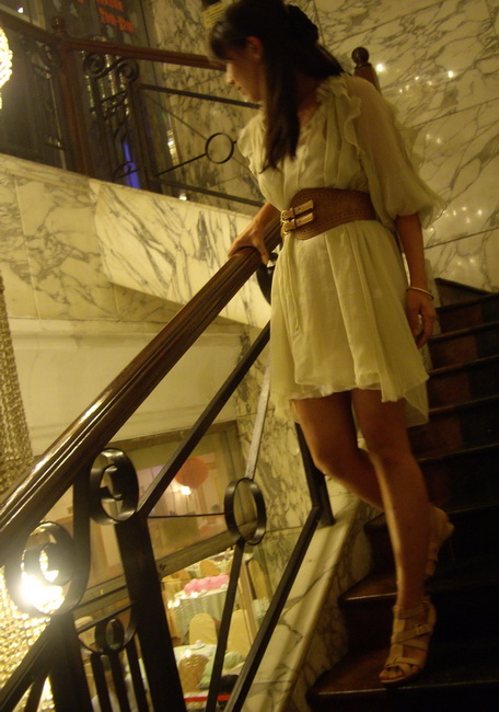 但這條裙子完全不修腰,是TOPSHOP的款,需要中間加腰帶,配起來還不錯看的,搭配了前些天買的一雙高跟鞋,很是般配