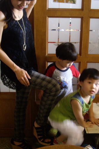 还好过了半个小时左右,老公回来,也顺利地把门锁打开修好了……但是已经5点多,太晚了~因为要煮饭啊!所以就没有出去玩了!老大哥哥哭得可厉害啊!一是因为被老妈我修理得很惨!二是因为不能出去玩了~