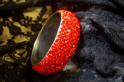 镶满了红色的水钻,非常抢眼!不过建议一定要配简单单色的衣服,不然就会显得太俗气了!