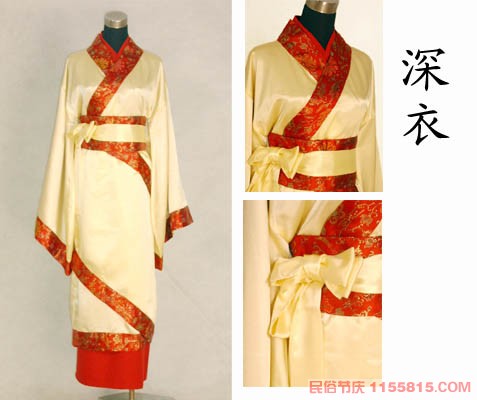 汉服的主要特点是交领、右衽,不用扣子,而用绳带系结,给人洒脱飘逸的印象。这些特点都明显有别于其他民族的服饰。汉服有礼服和常服之分。