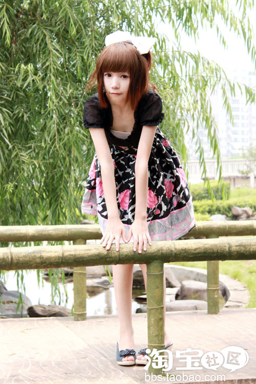 (虽然是黑色的,不过依然可爱哦,上面的花朵+上蓬蓬的裙摆。这是一个经典款的洋装 哦。很好看。)