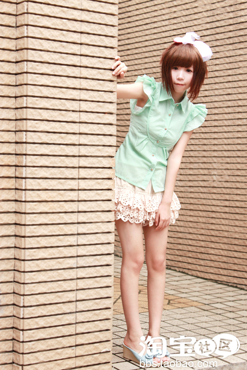 这款小飞袖设计的棉衬衫,很有邻家女孩的味道哦,非常的可爱。下面搭配的裙裤,不 怕走光哦,今年真是超级