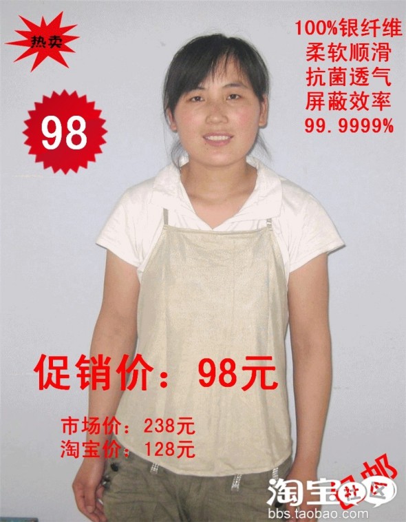 您可以参考,同时建议你到http//shop61941915.taobao.com淘宝店看看,这里销售100%银纤维的孕妇装,现在正在优惠大酬宾呢!