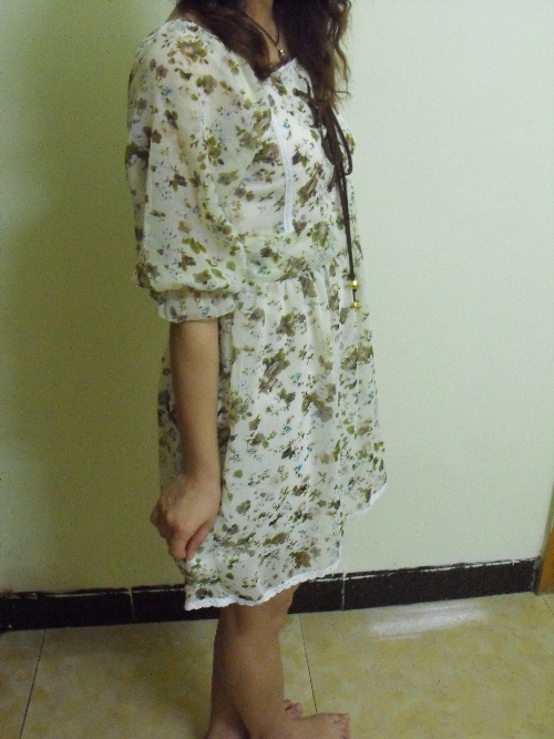 裙子是雪纺料子哦,胸前还有交叉绑绳,