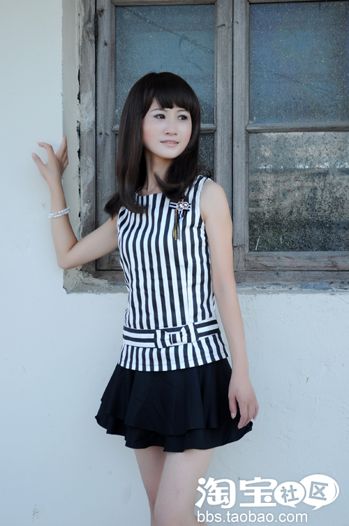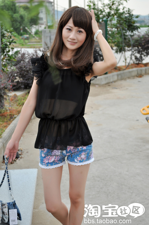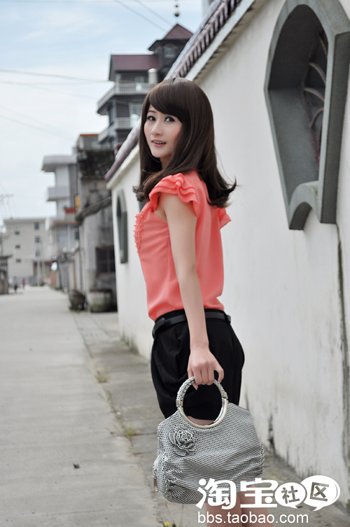 雪纺的无袖衬衫 很修身的款式 穿上会很显瘦