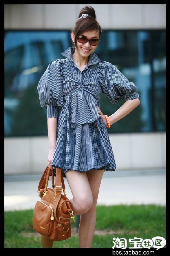 本帖的助威记录:助威总计 0 点 | 查看全部记录>>黑白相间 泡泡袖设计的OL短裙装
