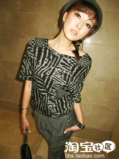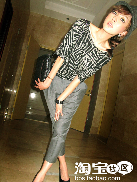 之前的有点装嫩了~那就来点欧美风的装扮吧,很简单的YY,大家衣柜肯定有那么一条合身剪裁的西裤吧?上身来件同色系的T吧,那不规则的印花,很有范儿,加多顶帽子和高跟~帅气又时尚呢!