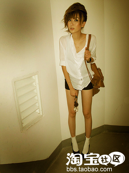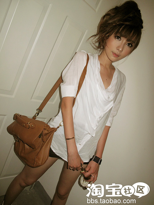 看了那么多的裙子,换一套裤装吧~不过这套衣服的重点还是上衣哦~~那个白色的堕领,是不是很有韩国FEEL呢?长长宽宽的白色上衣,让女生感觉帅气又娇小,在背个大包~~气质就是这样出来的咯~
