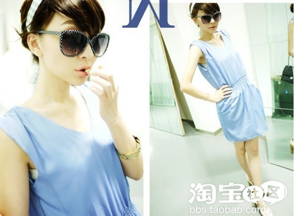 很喜欢这样的颜色,在夏天,很是抢眼~~裙子很简单,只是一块布过而已,但是也有它的小心思,它有小垫肩哦~穿这样的衣服可以让肩膀看起来更好看~很有衣架子的味道呢~配上白色的珍珠皮带~2个颜色搭在一起很顺眼哦!