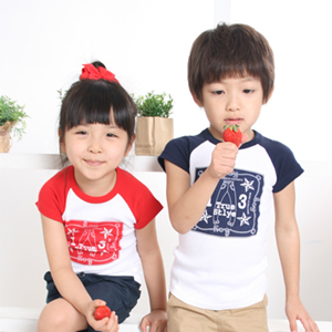 2010品牌流行童装沙虫日韩插肩撞色印花仿牛仔