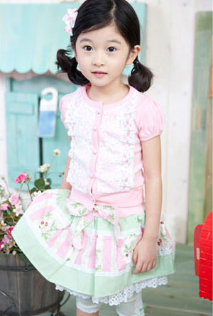 2010品牌时尚流行童装沙虫粉红 浅绿色田园卡