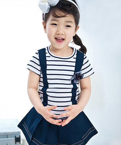 2010品牌流行童装 沙虫韩版新款横纹绣花连衣
