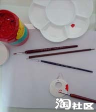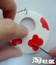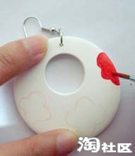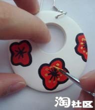 首先调好自己喜欢的丙烯养料(可以用水稀释)----用彩铅在木制的空白耳环上画出一个草图来-----然后开始细心上色哦