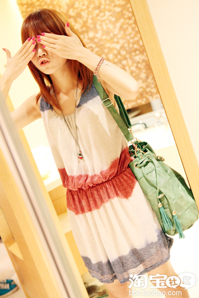 夏天我喜欢COLOUR点的搭配,SO,我穿了红衣配了绿色的包儿