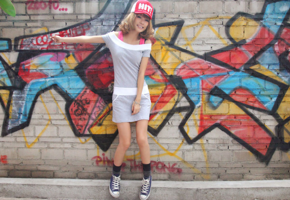 4.网球裙/运动裙+机车帽+运动鞋=运动女孩