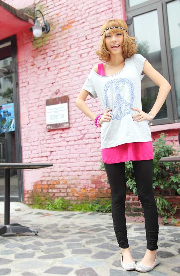 1.反战和平标T+亮色背心+打底裤=标准混搭达人