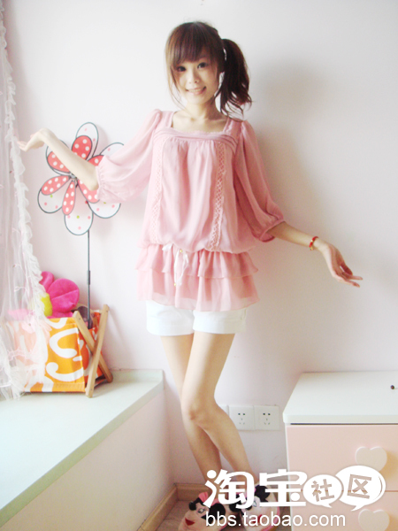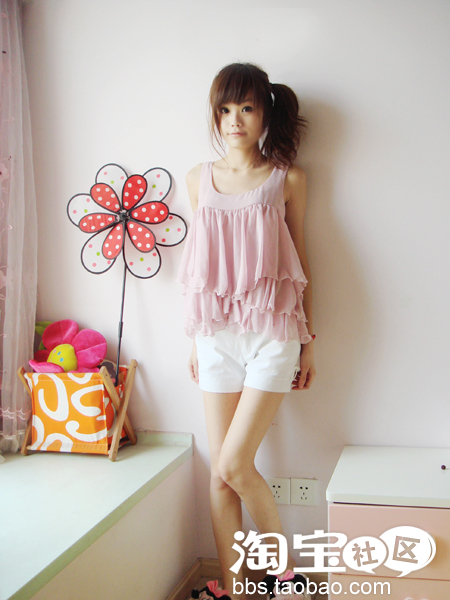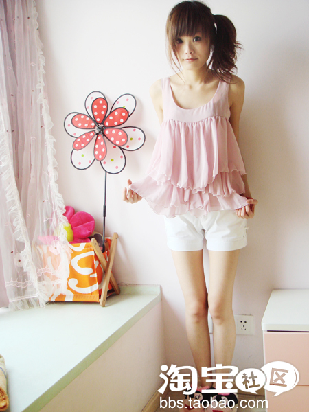 ②荷叶多层次雪纺衫+短裤+XX鞋(嘿嘿)