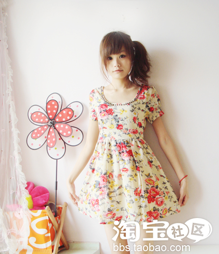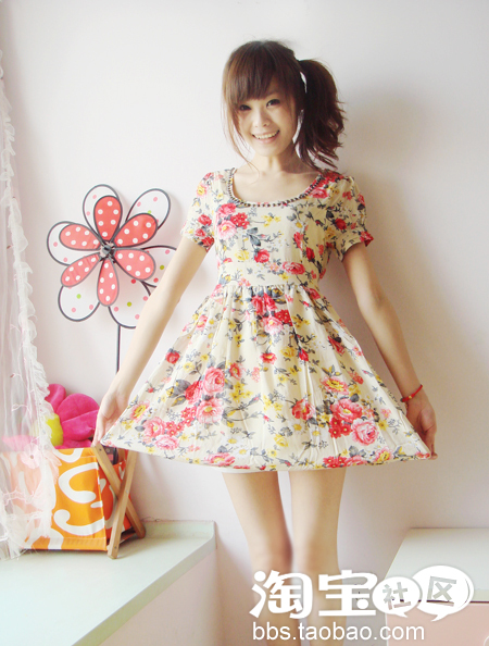 流行的大花花~加上领口的柳丁~设计师把柔美与粗犷都加到裙子上了~