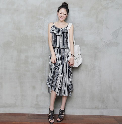 长及脚踝的裙摆可以让你行走如风,分外飘渺,