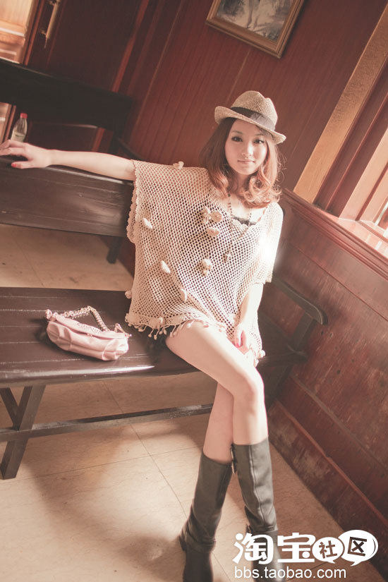 也可以和图片上这样,一个内搭,外面是一个很妙的镂空波西米亚线衫。