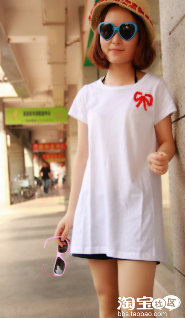 纯白色YY+红色蝴蝶结是不是很干净很舒服啊,当然夏天出门怎么可以少了眼镜呢!哈~