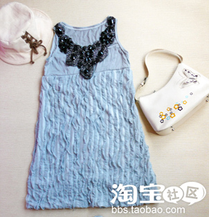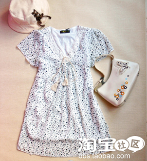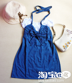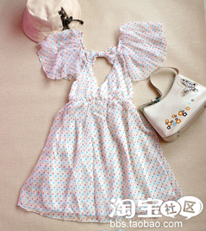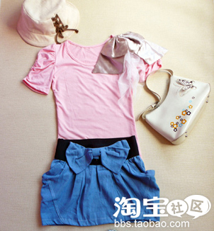 第八款,【晴天】蝴蝶结假两件连衣裙,誓将可爱进行到底,呵呵担心胸部不够丰满的美女要看哦,这款胸前蝴蝶结设计,可以修饰你的不足,提升信心哦,上身纯棉面料夏季穿很舒服!