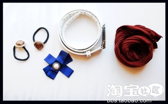 袖子的手法和小发夹同理,不过这么长的袖子发夹固定不住,所以用这样皮筋是很好的办法。绕进去,把皮筋装饰扣对这皮筋尾部一套,就扣住了,牢固地很~~~