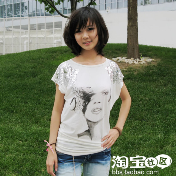 推荐这个T恤哦~非常的时尚,肩膀的亮片设计为这个T恤增添不少摩登味儿~为你打造不一样的酷感~