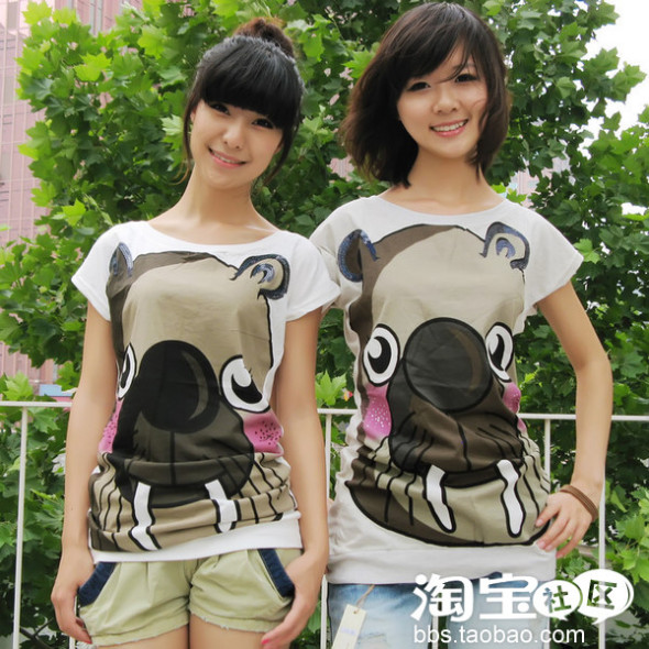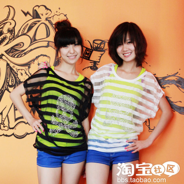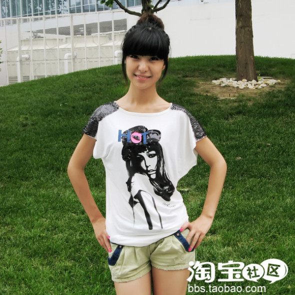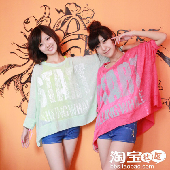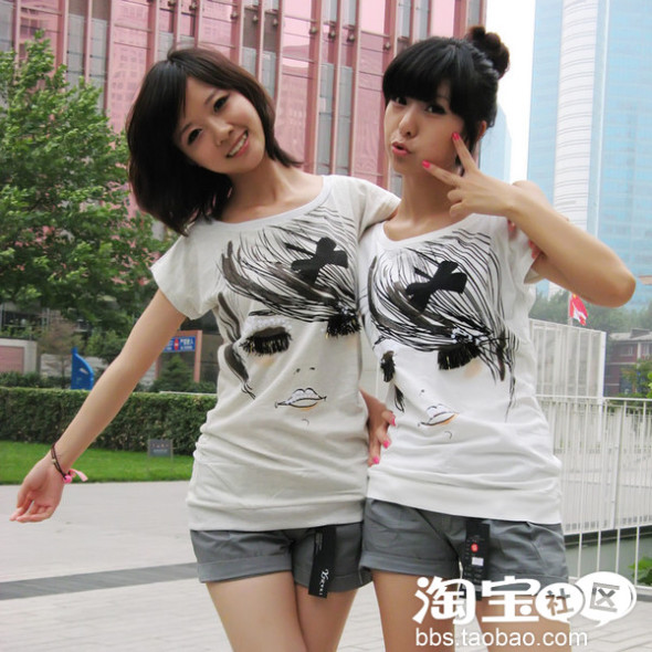 今年夏天很流行这样的肥肥的宽松版的T恤哈,两个颜色都很范儿哦~还有我喜欢宝石蓝的牛仔短裤~