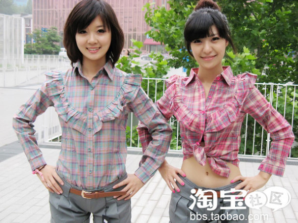 花边格子衬衫,后面也有花边哦,超可爱吧?