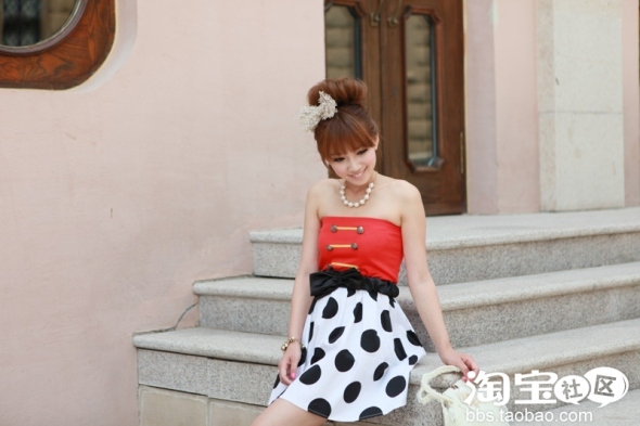 ·Ç³£Ñ¤Àö£¬´¼ÕýµÄ´óºìÉ«µÄ¹üÐØ²¿·ÖÓÃÁ˹¬Í¢Ê½µÄŦ¿ÛÉè¼Æ£¬