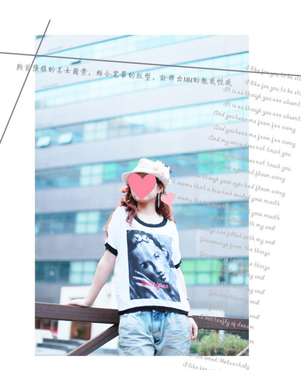 胸前优雅的美女图案,结合宽松的版型,诠释出MM的魅惑性感