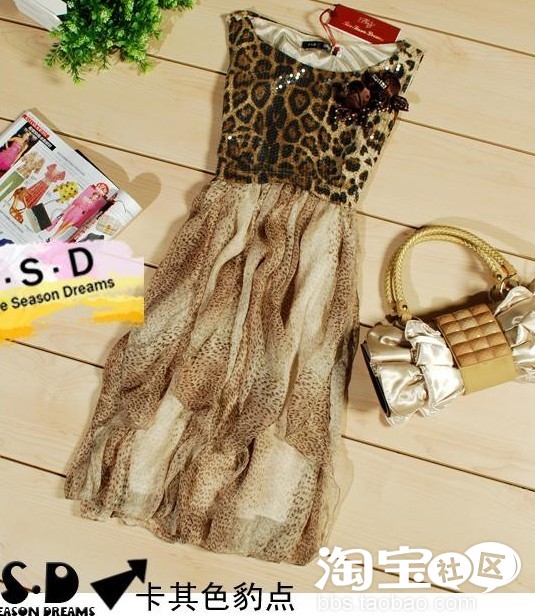 卡其色豹点真丝雪纺连衣裙穿起非常的舒适!