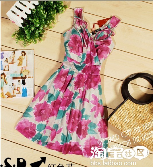这件大花朵连衣裙腰部后面松紧设计,即使是稍胖的人穿也一样美哦,夏天穿着非常清爽透气,版型非常好,修饰出美丽多姿的身材,适合平时穿M号和S号的MM。