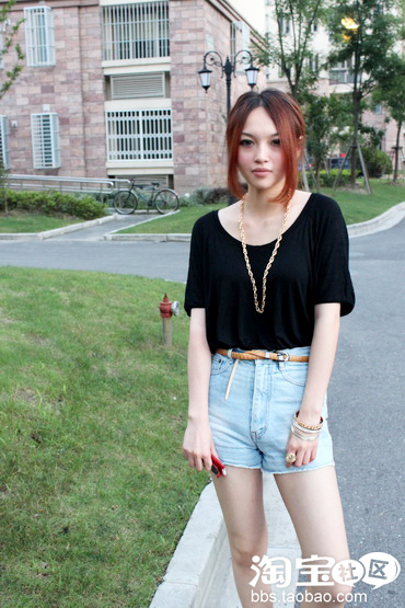 很喜欢高腰的牛仔短裤 显得腿好长^^