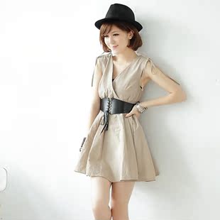 米色水蝴蝶收腰连衣裙+花石发卡