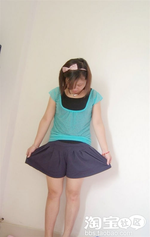百摺裤群穿上身的效果真的好甜美的,也够可爱呢,一点都不显肥哦!